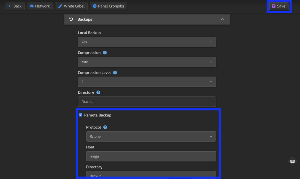最後就把HestiaCP把Backup的設定改一下,修改的位置如下: