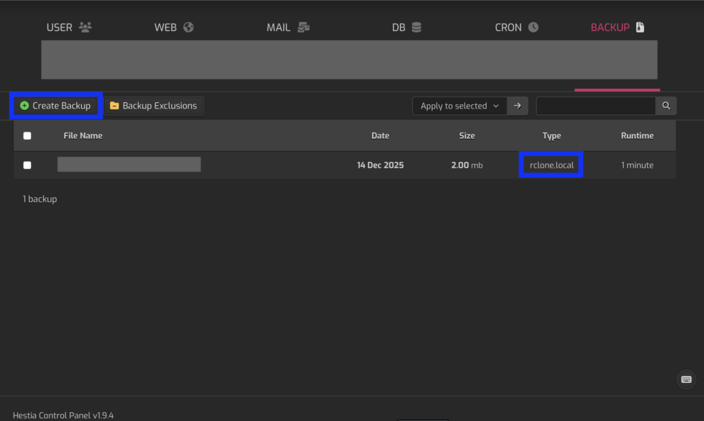你可以先試試看有沒有rclone,據說HestiaCP現在會自動幫你安裝。
